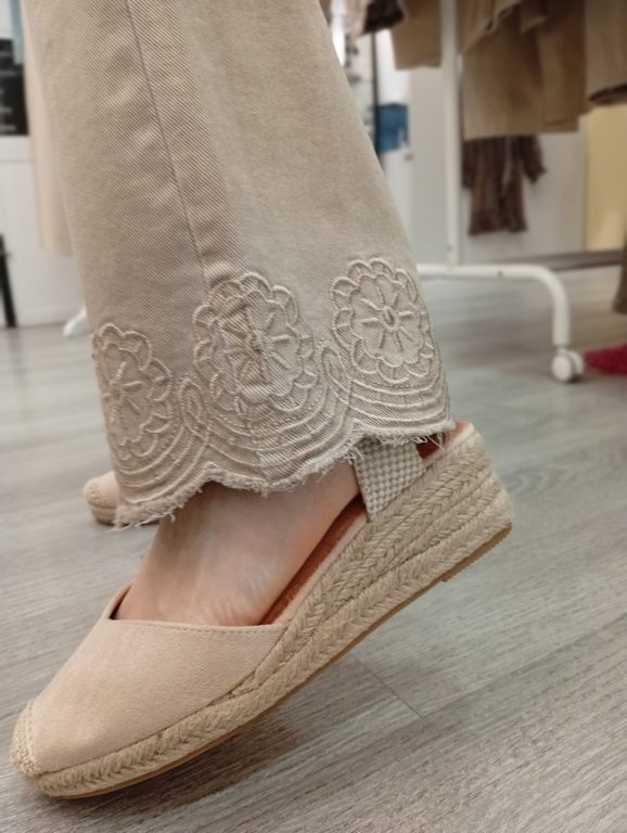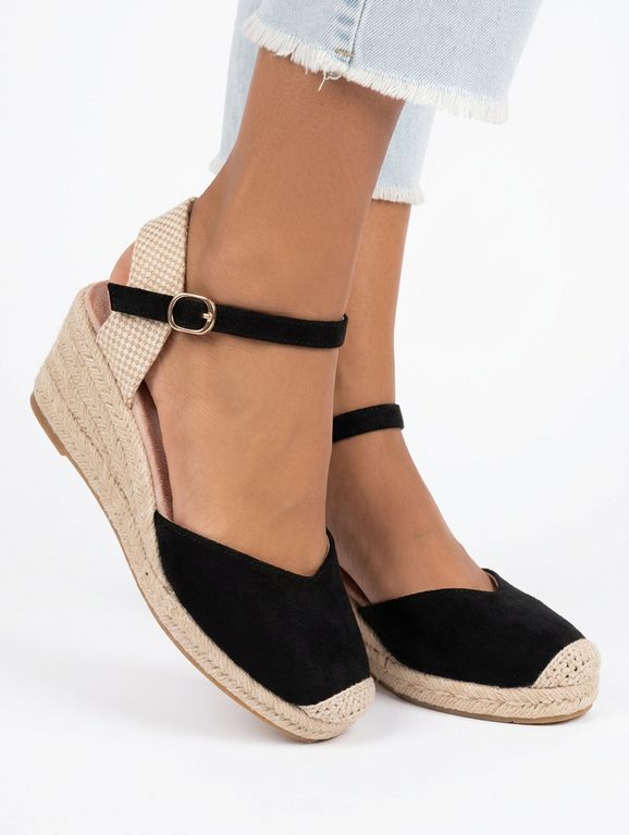 Cuñas de esparto. Con cierre de hebilla en el tobillo. Planta acolchada. Detalle de refuerzo en crochet en la puntera. Cubre pie en forma de V. Cuña de 4,5 cm. En varios colores.