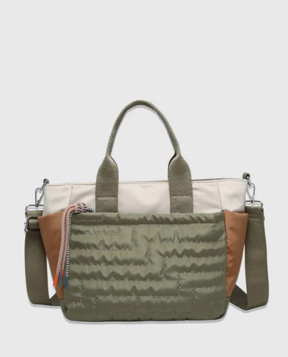 Bolso tricolor. Diseño shopper. En tejido de nylon. Forrado. Cierre de cremallera. Con varios departamentos. Doble correa, asas para llevar al hombro y otra regulable para llevar cruzado. Detalle de pespuntes y borla.