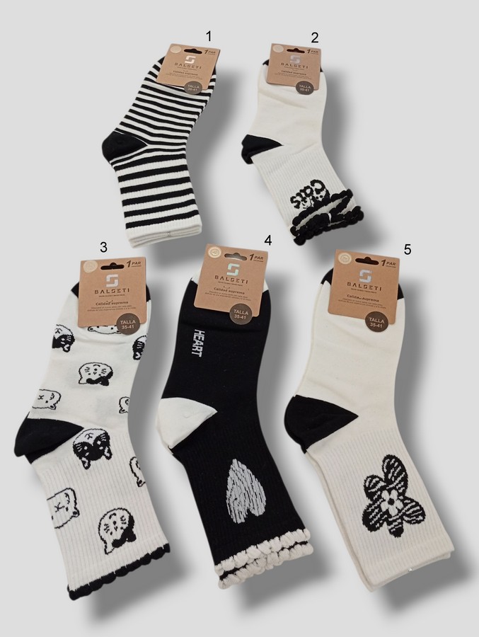 Calcetines de caña alta. Con original estampado. Talla única, que abarca desde el número 35 al 41.