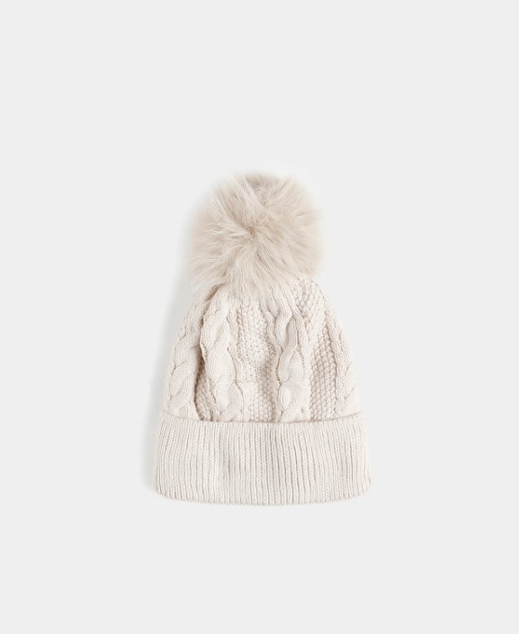 Gorro de lana. Con vuelta acanalada. Dibujo de coletas. Pelo por dentro. Detalle de pompón.
