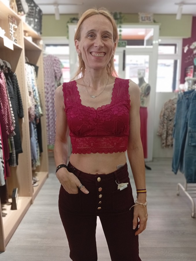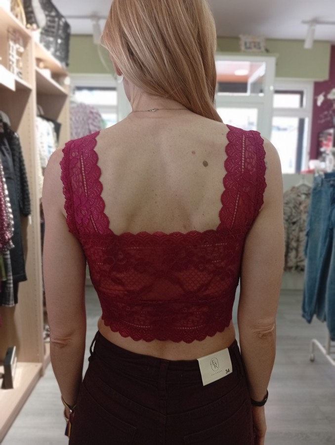 Top/bralette. En tejido de encaje. Con cazuelas forradas. En varios colores.