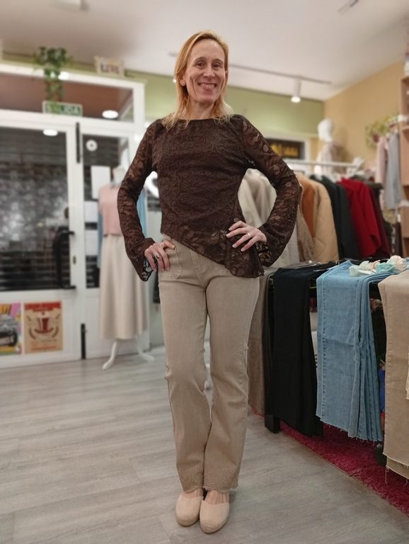 Top/camiseta. En tejido de encaje elástico. Manga larga con puño acampanado. Forrado en la parte delantera. Escote redondo. Detalle de pliegue en un lateral. Bajo asimétrico.