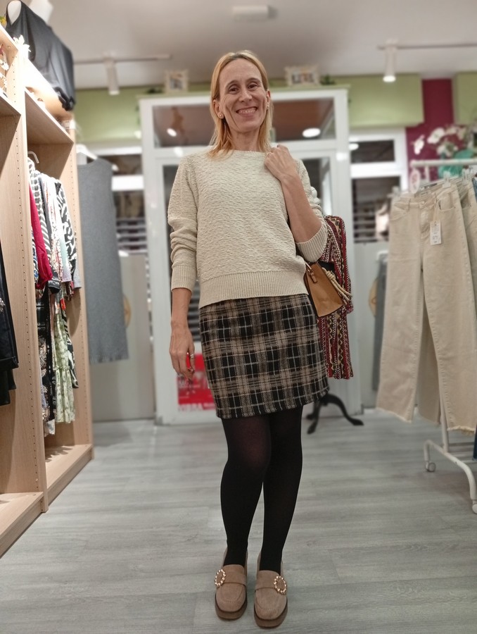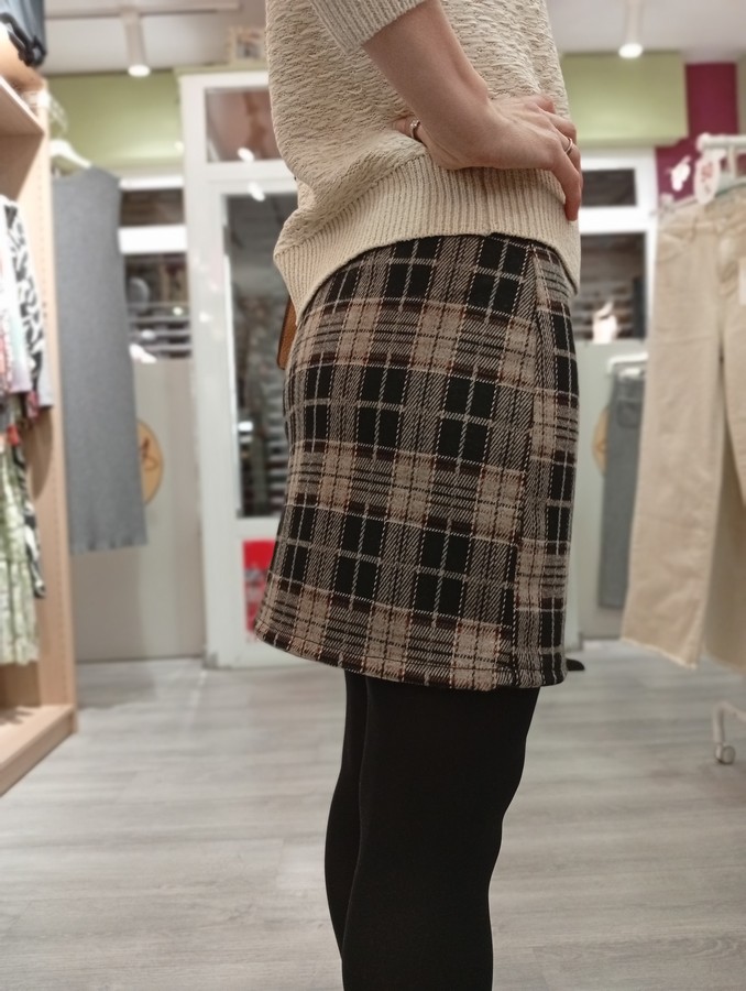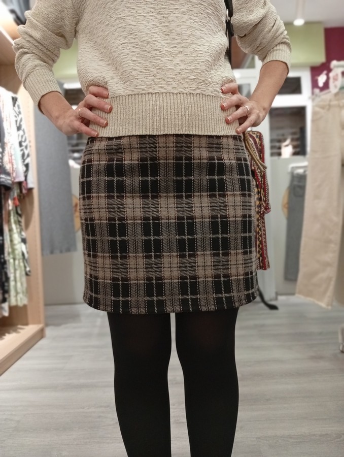 Mini falda. Con estampado a cuadros. Goma en la cintura. Corte en A.